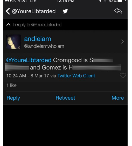 The poster child for Twitter’s racist problem is one Andie Pauly of Cicero, Illinois.