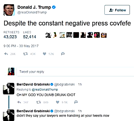 Yes, the alleged real estate zillionaire turned apprentice POTUS tweeted this in the early morning hours of May 31.