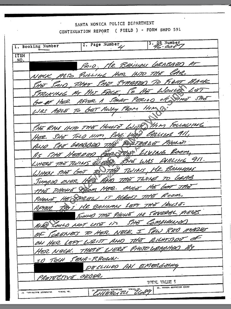 And they should be. Twiiter user @Spicerlies posted several pages of a police report pertaining to alleged acts of violence by Steve Bannon (click each to enlarge).