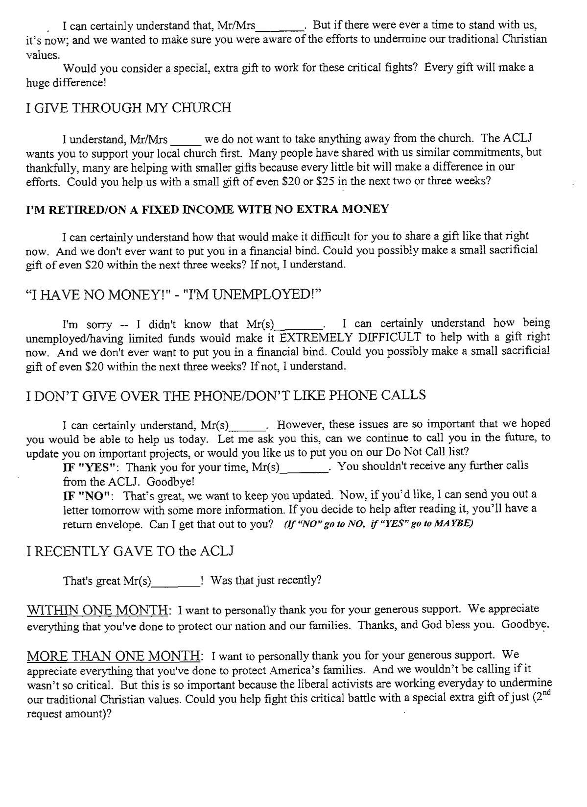 The Guardian even tracked down a copy of the telemarketer script used by CASE (click for a full-sized version).