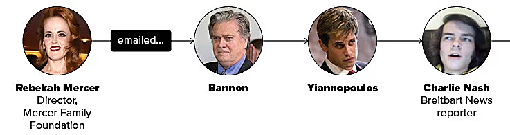 The article is lengthy, detailed, and filled with digrammatic graphics connecting Bannon, Yiannopoulos, and a yuuuge gaggle of players ranging from outright racists to unicersity professors to political advisors to billionairs not named Mercer.