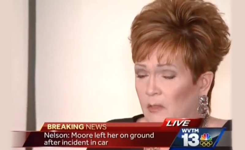 ‘”You’re just a child and I am the District Attorney of Etowah County, and if you tell anyone about this, no one will ever believe you,”‘ Nelson claims Moore said to her before either she fell or he pushed her out of the car. Nelson says she had bruises after but covered them with makeup to hide them. Nelson says she told her sister two weeks later. Nelson says she also told her mother about four years ago, and told her husband before they got married.