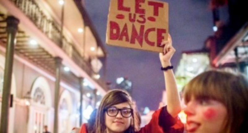 Strippers shouting “my body is not illegal” marched Thursday to protest the closure of clubs in and around Bourbon Street, the main artery of New Orleans’ raucous nightlife district.